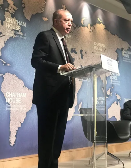Cumhurbaşkanı Erdoğan Londra'da düşünce kuruluşu Chatnam House'da önemli açıklamalarda bulundu. Cumhurbaşkanı Erdoğan, "İsrail Filistin gerilimi Ortadoğu bölgesini on yıllardır istikrarsızlığa sürükleyen en önemli sorunların başında geliyor. Biz 1697 sınırları dahilinde, başkenti Doğu Kudüs olan bağımsız bir Filistin devletinin kurulmasının, bölgede kalıcı barış için yegane yol olduğunu hep söyledik. Bugün ABD'nin büyük elçiliğini Kudüs'e taşıma yönündeki kararını özellikle de uygulama noktasında çok çok talihsiz buluyoruz. Bu kararı bir kez daha reddediyoruz. Amerika sorunun bir parçası olmayı tercih ederek, Ortadoğu barış sürecindeki arabuluculuk rolünü yitirmiştir. Bu atılan adımın insanlığın barışına hizmet etmediğini tam aksine, bölgenin ve insanlığın birbirine düşmesi için bölgeyi karıştırmak için adeta bir fitil ateşlemesi olduğunu hatırlatmak isterim" dedi